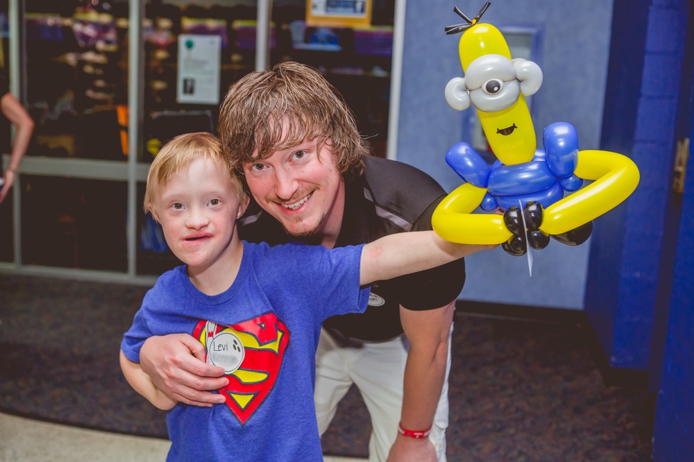 After signing in, participants headed straight for the food that was generously donated by the participating companies. Participants of this event enjoyed Papa John’s pizza, Coldstone Creamery ice cream, McAlister’s Deli cookies, and Raising Cane’s chicken fingers. Guests then made their way to the bowling lanes where they had time to pick up their bowling shoes, balls, and also meet the other Father and Son bowlers. Bowling was just one of the many amazing highlights of the evening at the Hitters and Splitters Father Son Bowling event. The continuous line coming from the Way Cool Balloons booth was proof that this special event had much more to offer than just bowling. Way Cool Balloon’s incredible creations ranged from Despicable Me Minions to fully wearable sky-high hat costumes that fascinated and impressed us and our guests! Attendees also spent time making memories to remember at Grayward Entertainment’s photo booth, where guest lined up to have their pictures made with all of the fun accessories.