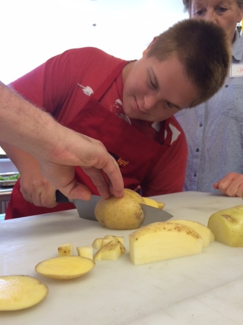 Under the guidance of Chef Michael Backouris and staff we learned the correct way to hold a sharp knife safely and properly slice, chop & season the foods for our meal.