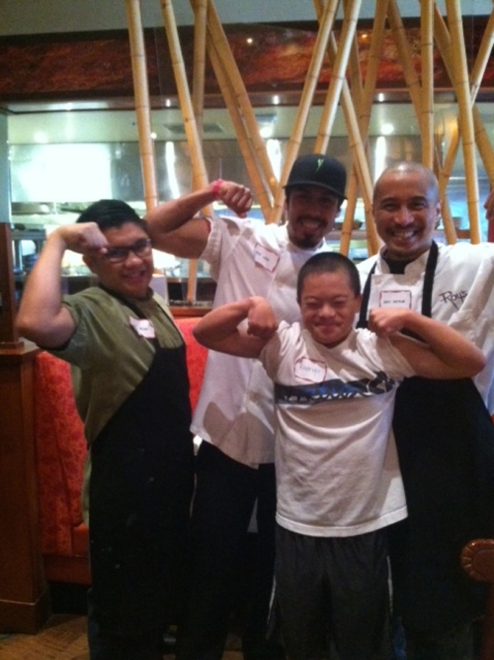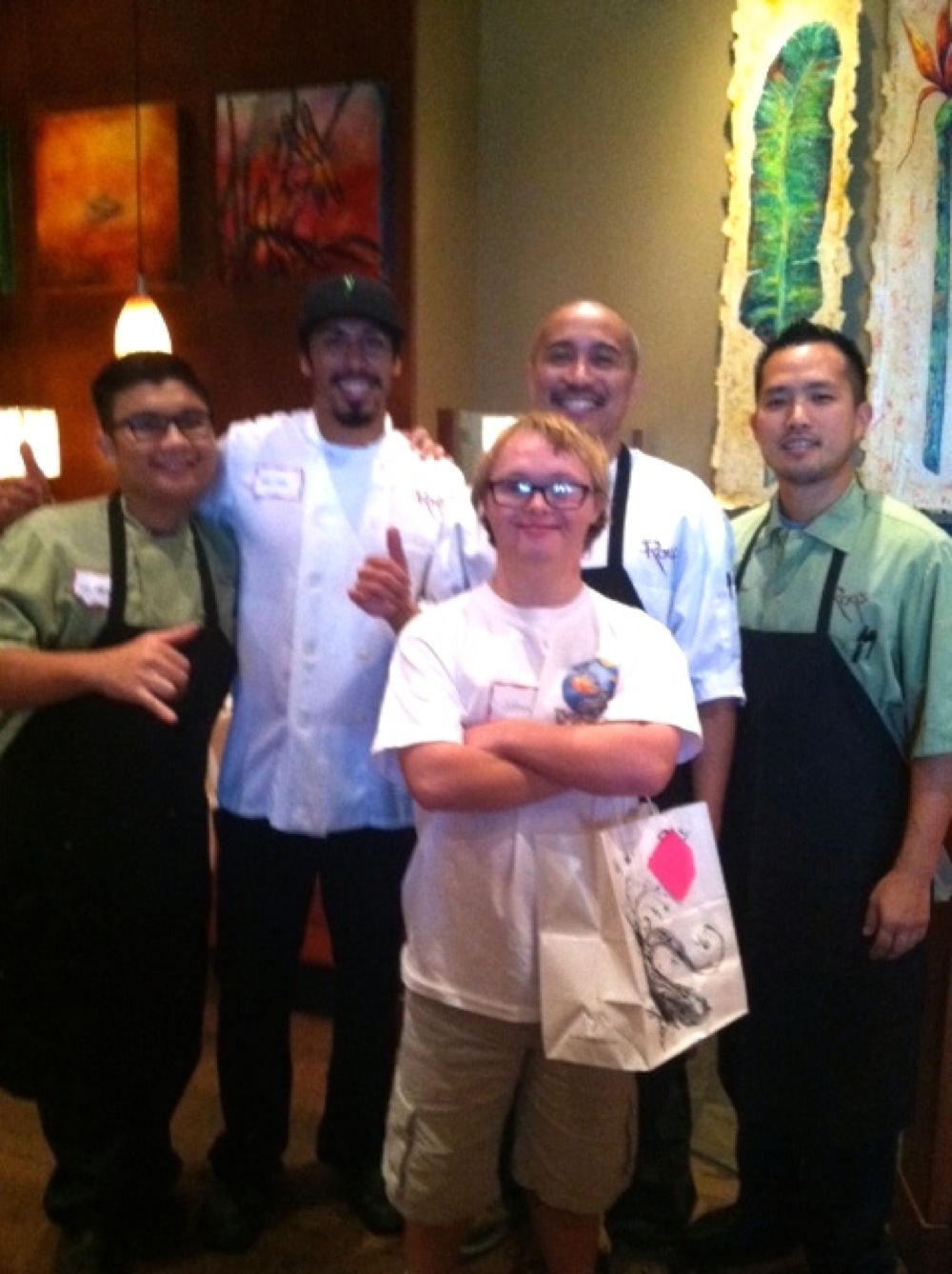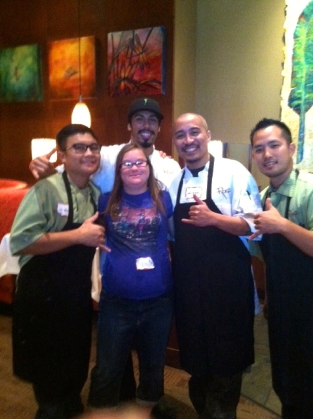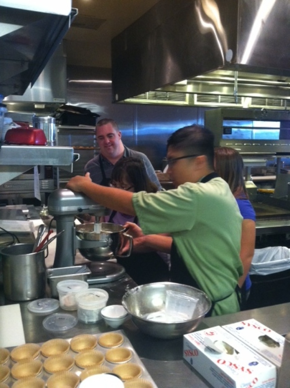 I went to Batter Up at Roy’s in Anaheim on October 19, 2013. My group made a salad with Chef Luke. We also learned how to make a blue cheese salad dressing. Chef Luke showed us how to hard boil eggs, peel them and chop them for the salad.