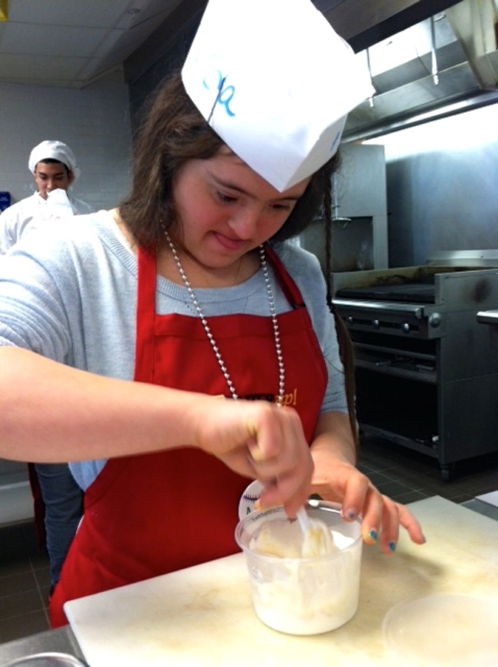 Saturday was an amazing day. It was a remarkable opportunity to work with those teens and young adults, particularly Sarah and Jace. These two students, which I taught in the group, were a pleasure and a joy to be around. They were very attentive and enthusiastic. They were always ready for what was next. I am happy that I was able to teach them something positive that could continuously be used in life as they did for me. I was also pleased that the parents were very interested as well and were asking questions to even better guide their child when cooking at home.