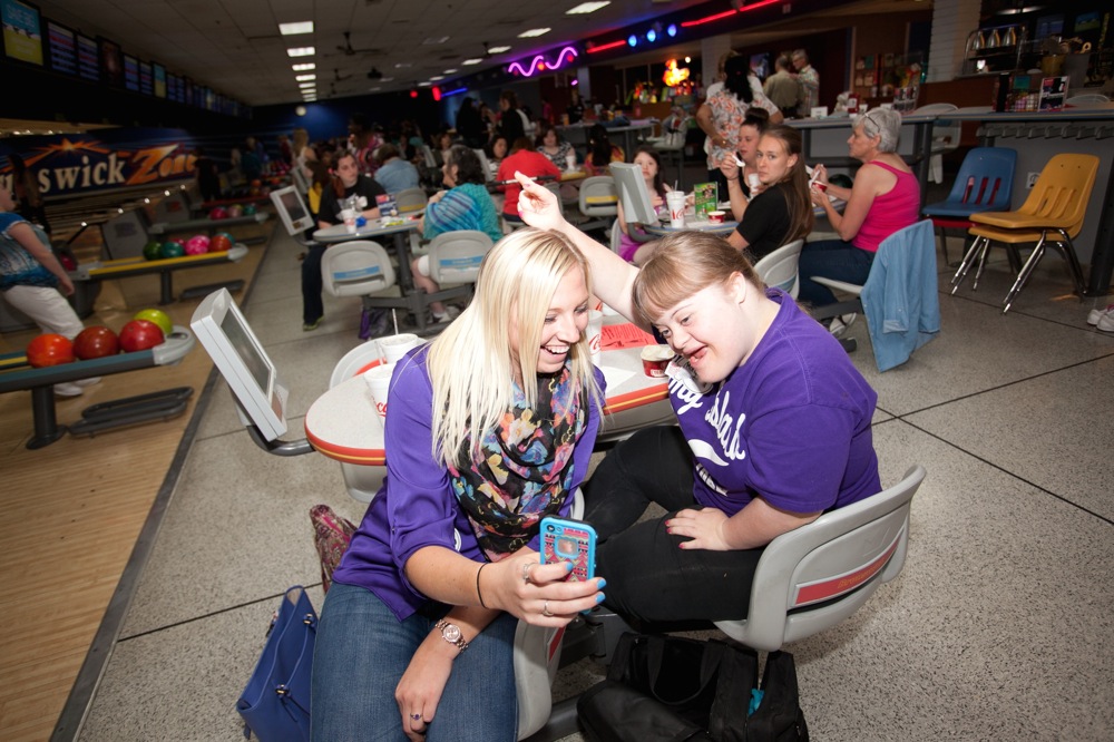 After signing in, participants made their way to the bowling lanes where they had time to pick up their bowling shoes, balls, and also meet the other Mother/Daughter bowlers. After getting settled into their lanes, the games were underway and the families started migrating toward the delicious food that was generously donated by the participating companies. Participants of this event enjoyed Papa John’s pizza, Coldstone Creamery ice cream, McAlister’s Deli cookies, and Raising Cane’s chicken fingers and french fries.