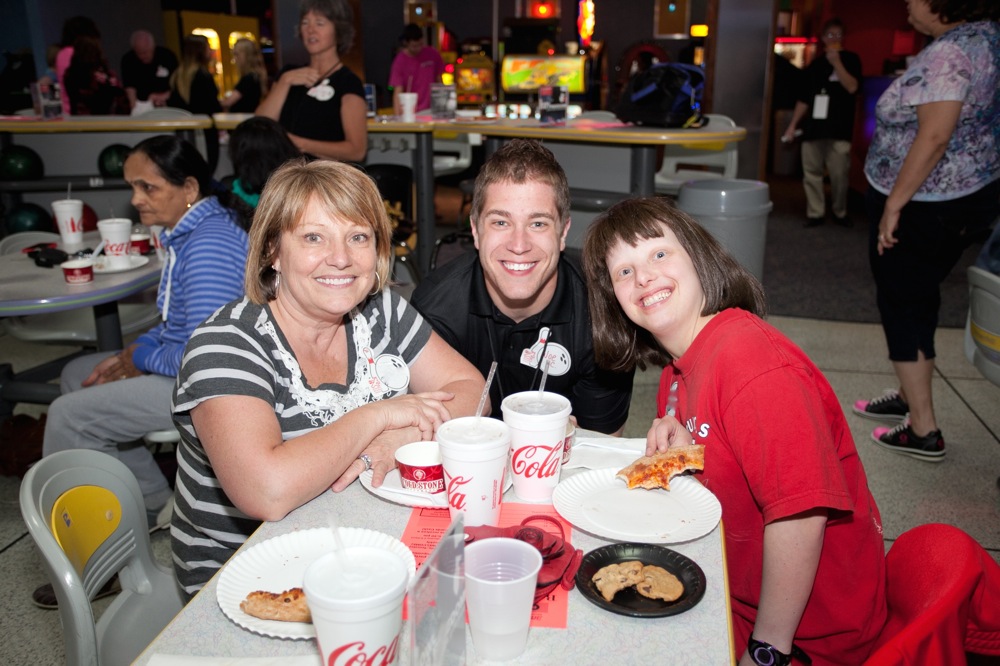 After signing in, participants made their way to the bowling lanes where they had time to pick up their bowling shoes, balls, and also meet the other Mother/Daughter bowlers.  After getting settled into their lanes, the games were underway and the families started migrating toward the delicious food that was generously donated by the participating companies. Participants of this event enjoyed Papa John’s pizza, Coldstone Creamery ice cream, McAlister’s Deli cookies, and Raising Cane’s chicken fingers and french fries.