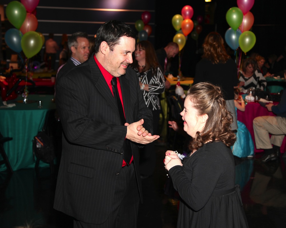 Pujols Family Foundation Executive Director Todd Perry and Former Major League Baseball All-Star Jim Edmonds welcomed the crowd. While music was playing in the background during dinner, the party really started when Radio Disney began leading group dances while sprinkling in some games that rewarded winners with special Disney prizes. A highlight of the evening was when there were two songs set aside for Mother/Son and Father/Daughter dances. As the night continued on, some of the families enjoyed sweet treats provided by Cold Stone Creamery, McAlister’s Deli and Vincent Van Doughnut. Balloon creations also were abundant throughout the room. Way Cool Balloons artfully created balloons shaped as butterfly wings, aliens, outrageous hats and many others.