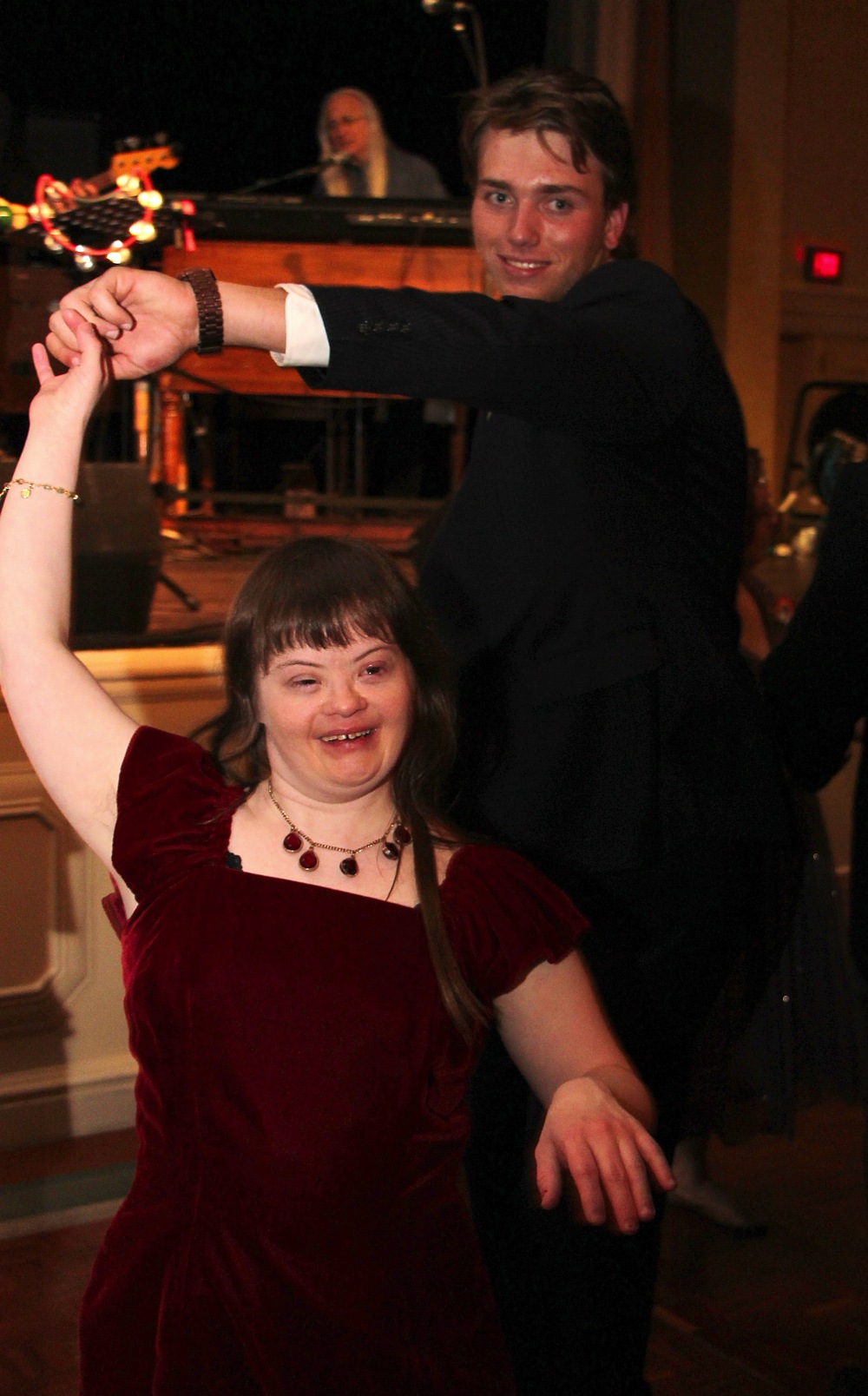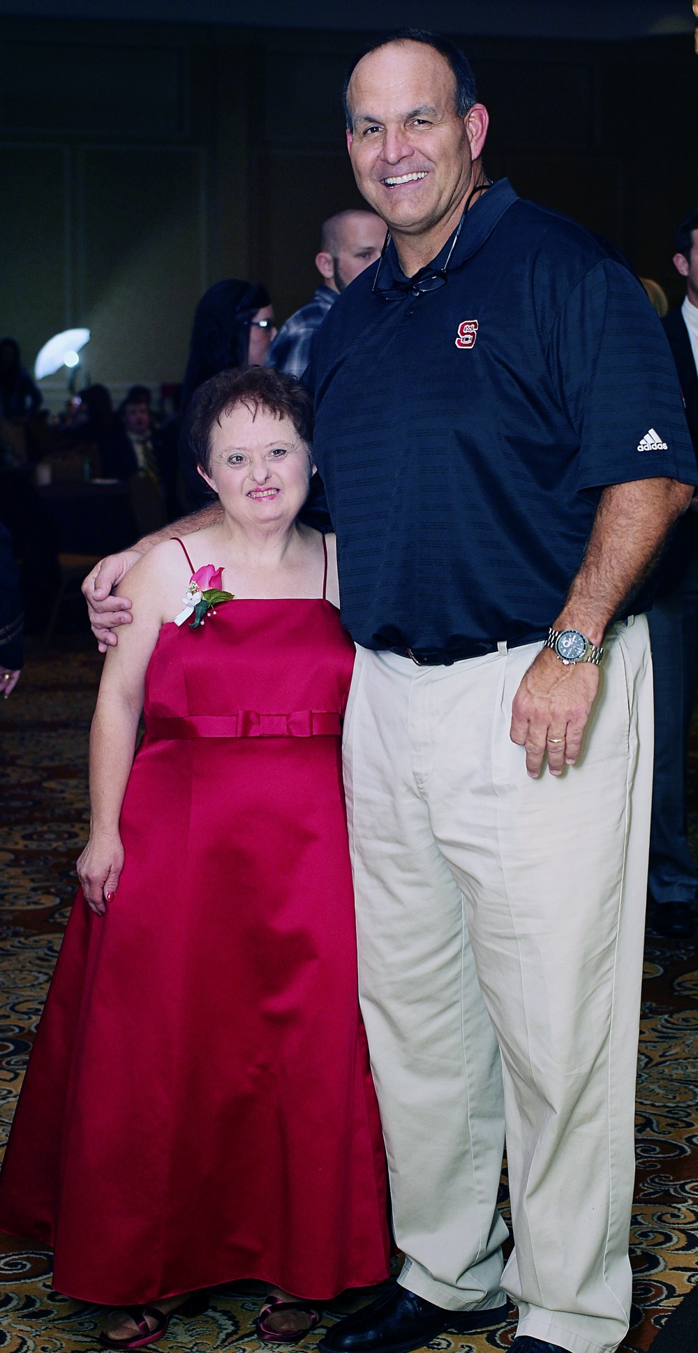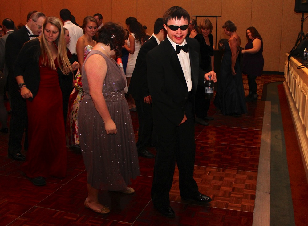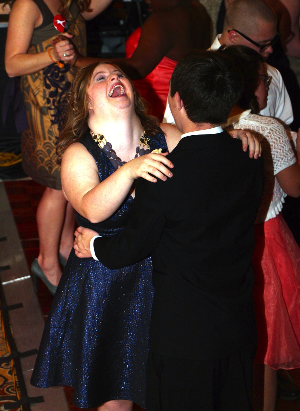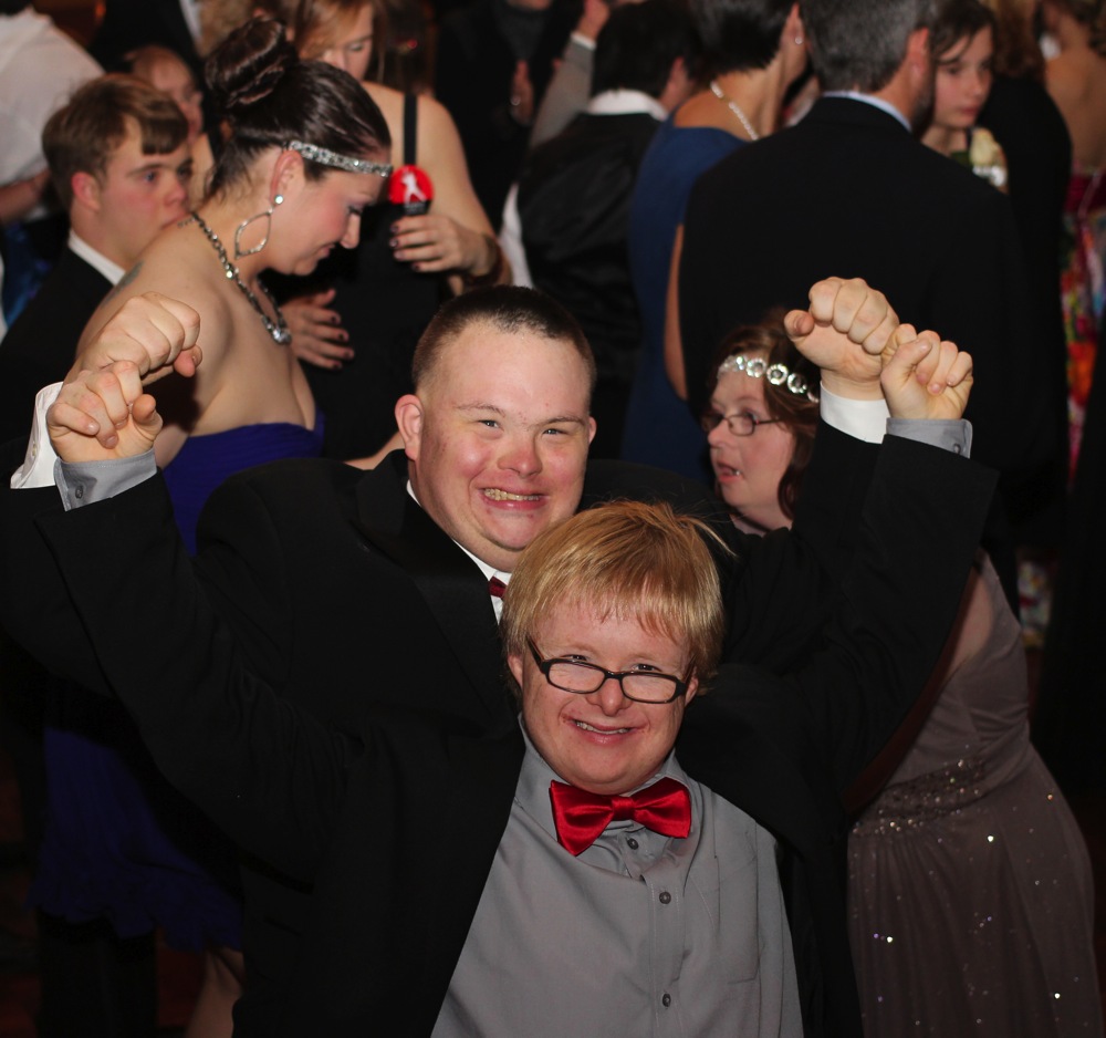 As the stars of the evening approached the ballroom, each person with Down syndrome walked down a plush red carpet surrounded by cheerful friends and volunteers from Young Life. Each couple displayed their glamour and glee as they strutted down the carpet into the ballroom with confidence. And all the single ladies and gents were thrilled to take advantage of the handsome Trevecca and Lipscomb baseball players, and the stunning Tennessee Titans cheerleaders who were available to escort guests into the prom. In addition, Bruce Matthews, NFL Hall of Famer and offensive line coach for the Tennessee Titans greeted every guest walking the red carpet and posed for many photos with our special friends.