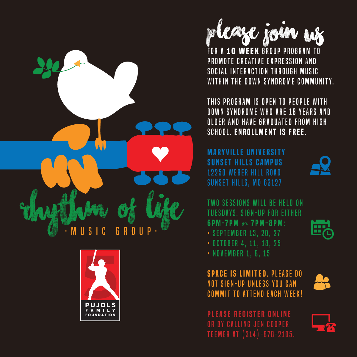 Please join us for a 10 Week group program to promote creative expression and social interaction through music within the Down syndrome community.