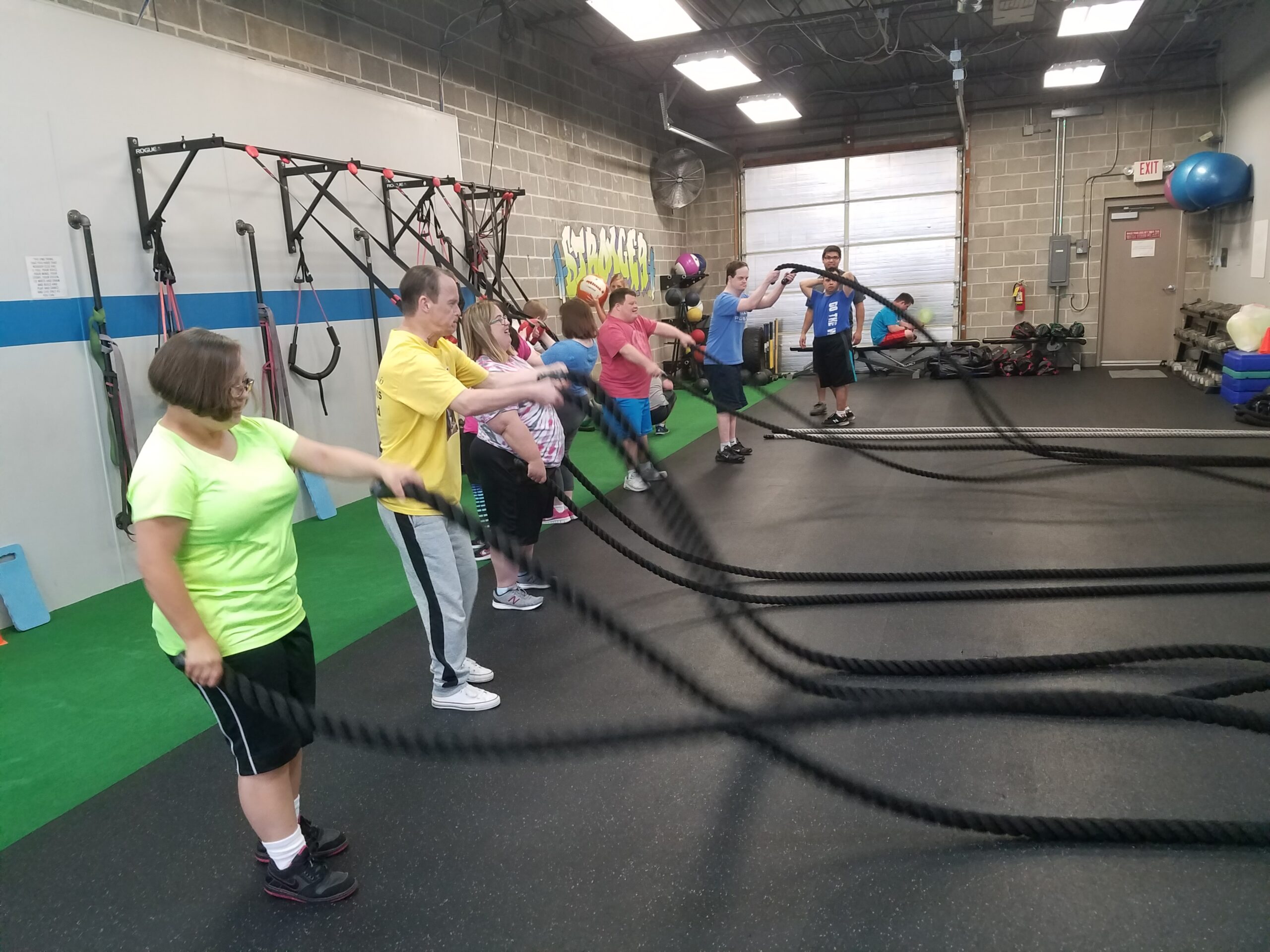When I walked into the exercise area, I was immediately greeted by Ryan, the leader of the program. He has a brother with Down syndrome and is as welcoming as anyone could be. He handed me a copy of the outline for the class that day, which included a warmup, several different competitions involving weighted medicine balls and tires, and to top it all off, a circuit workout of three different exercises. Now while it’s easy to read this the way it’s written, it might still be difficult to discern what it actually feels like to be in that room, so let me put it this way:
